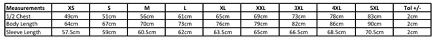 Charte de tailles :